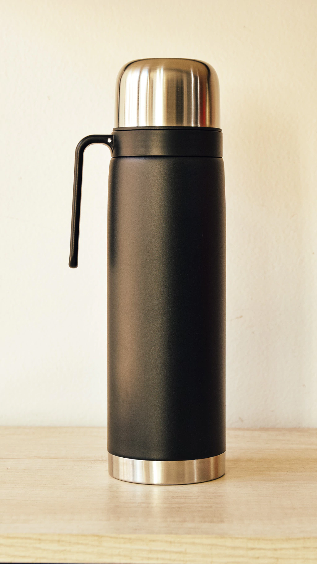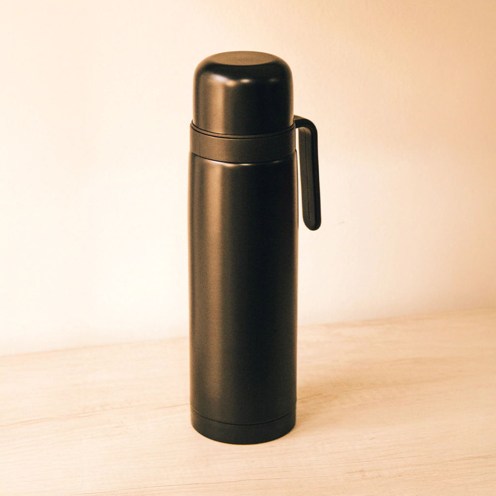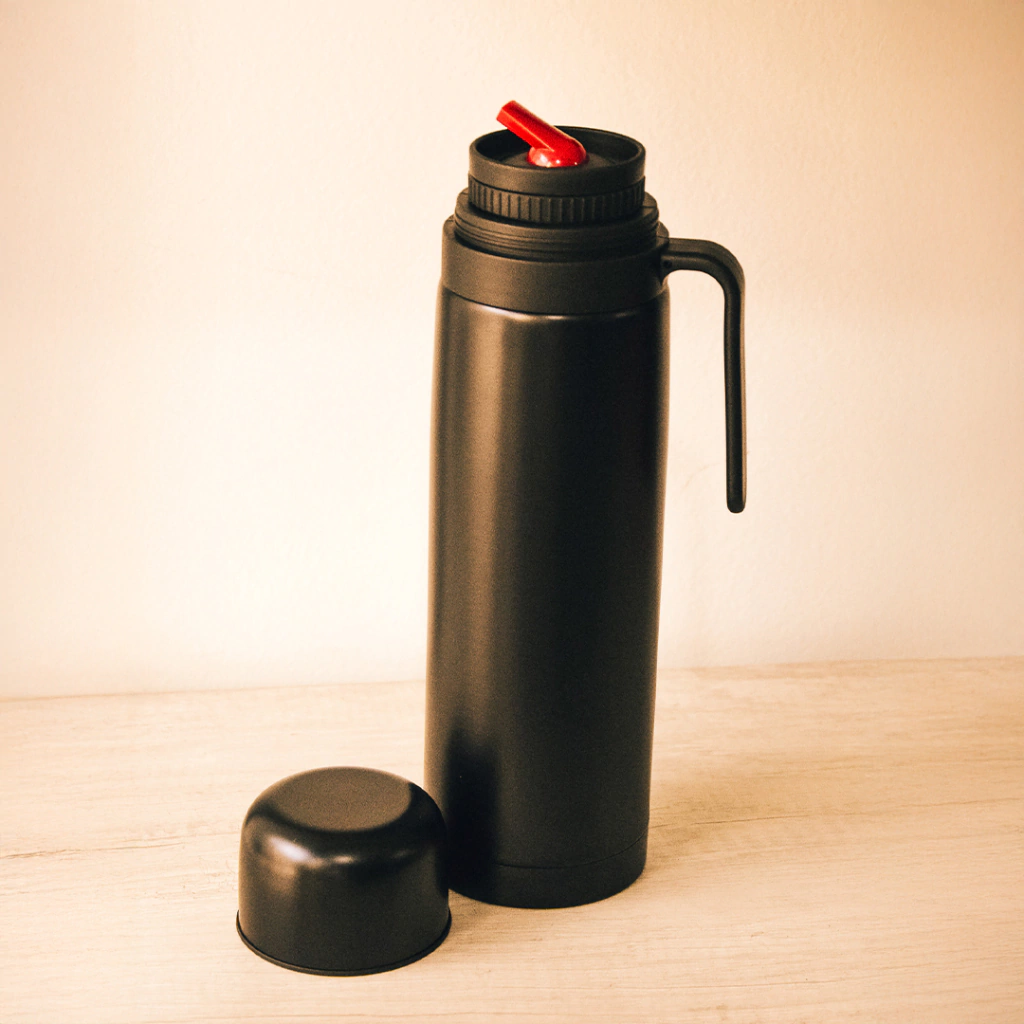 Termo de Acero Inoxidable de 1L con Media Manija y Pico Cebador - NEGRO